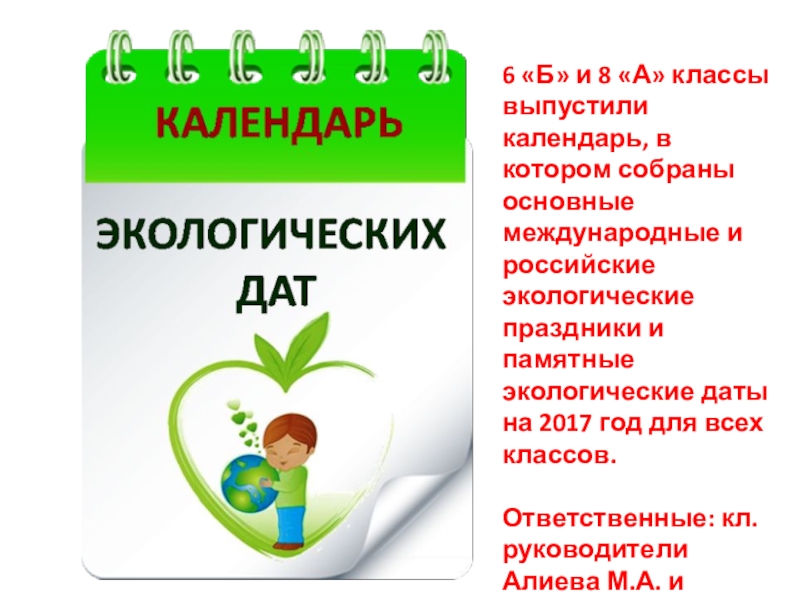 6 «Б» и 8 «А» классы выпустили календарь, в котором собраны основные международные и российские экологические праздники