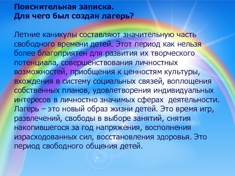 Отчёт о работе летнего оздоровительного лагеря «Радуга»