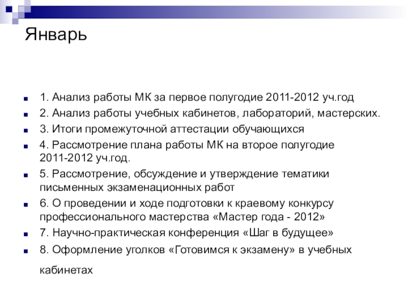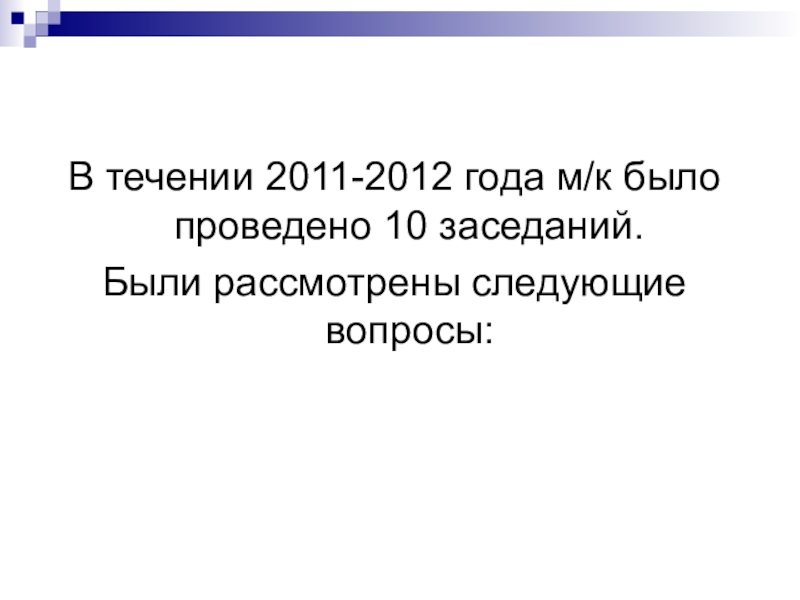 Слайд 12В течении 2011-2012 года м/к было проведено 10 заседаний.