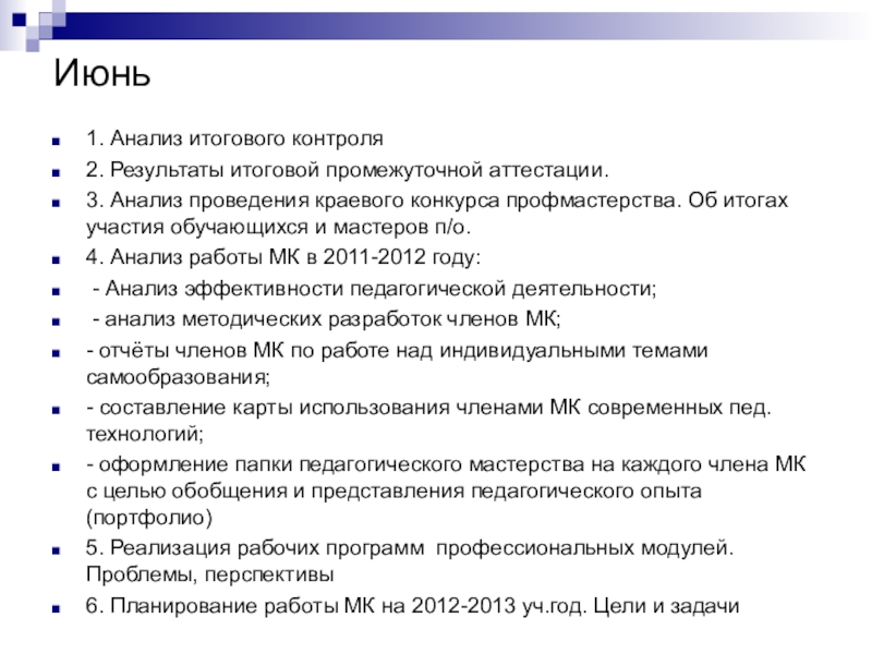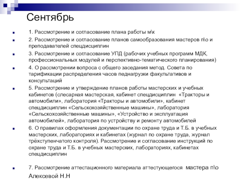 1. Рассмотрение и согласование плана работы м\к