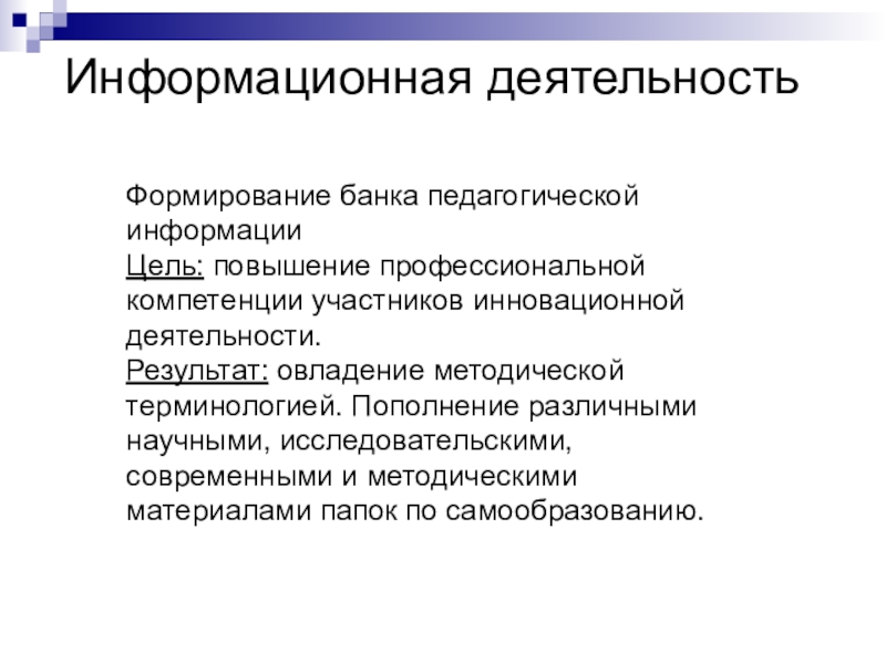 4. Информационная деятельность. Формирование банка педагогической информации.