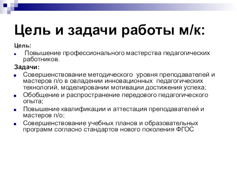 Слайд 4Цель и задачи работы м/к: