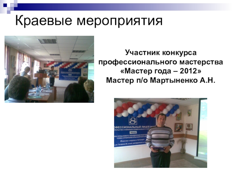 6. Краевые мероприятия. Конкурсы проф.мастерства, «Мастер года – 2012»