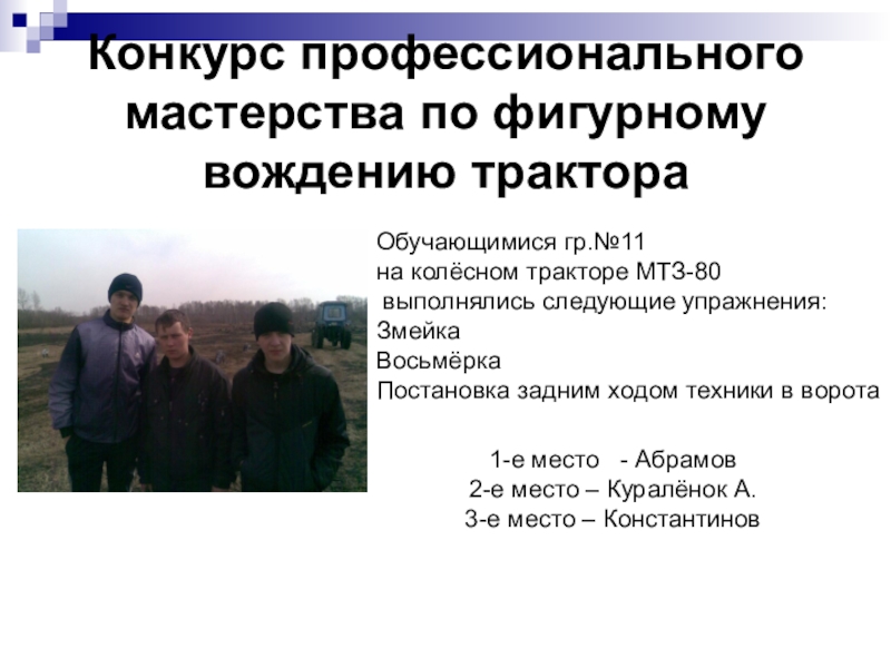 Слайд 38Конкурс профессионального мастерства по фигурному вождению трактора