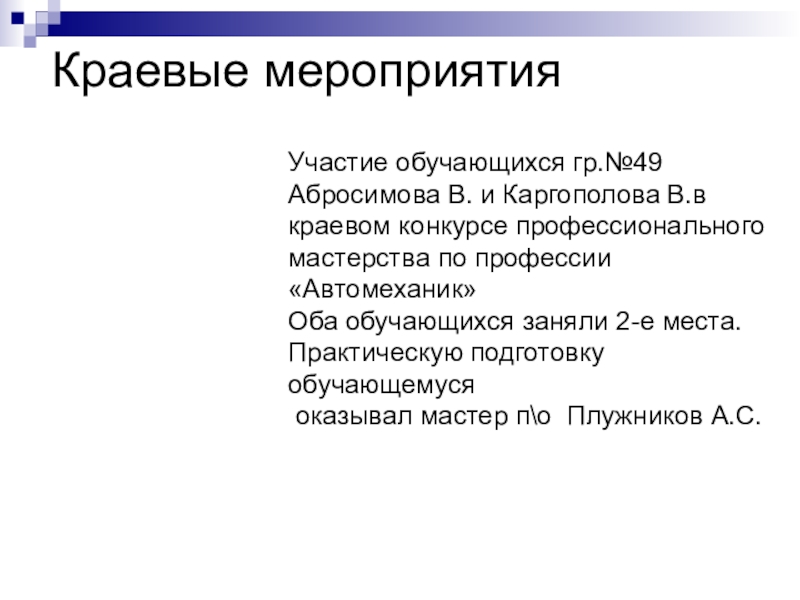 Участие обучающихся гр.№49 Абросимова В. и Каргополова В.в краевом конкурсе