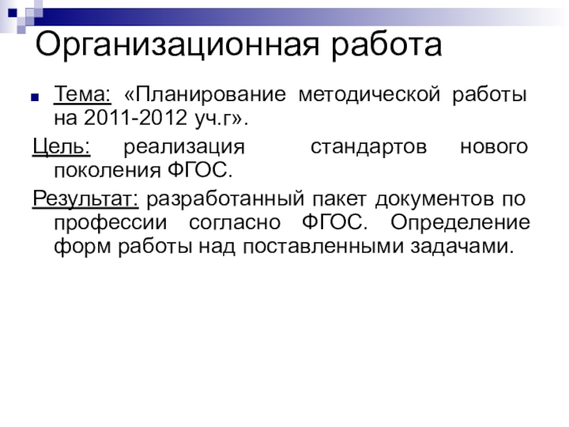 Тема: «Планирование методической работы на 2011-2012 уч.г».