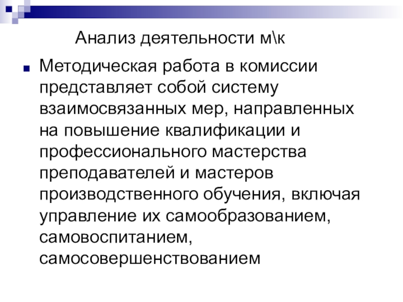 7. Анализ деятельности м\к