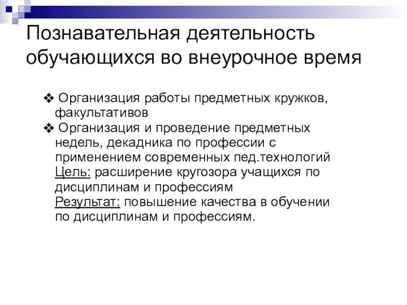 Слайд 33Познавательная деятельность обучающихся во внеурочное время