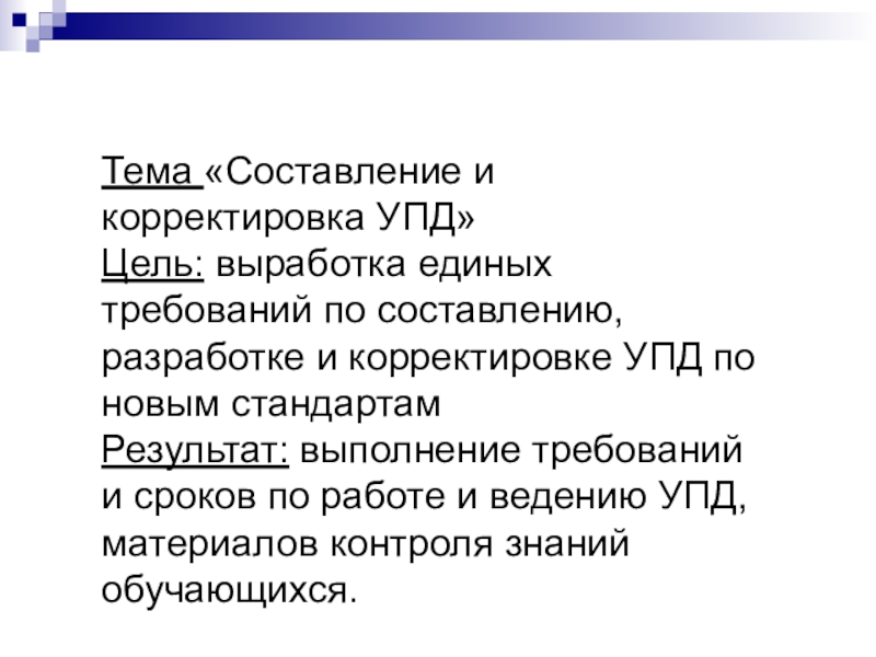 Цель: выработка единых требований по составлению, разработке