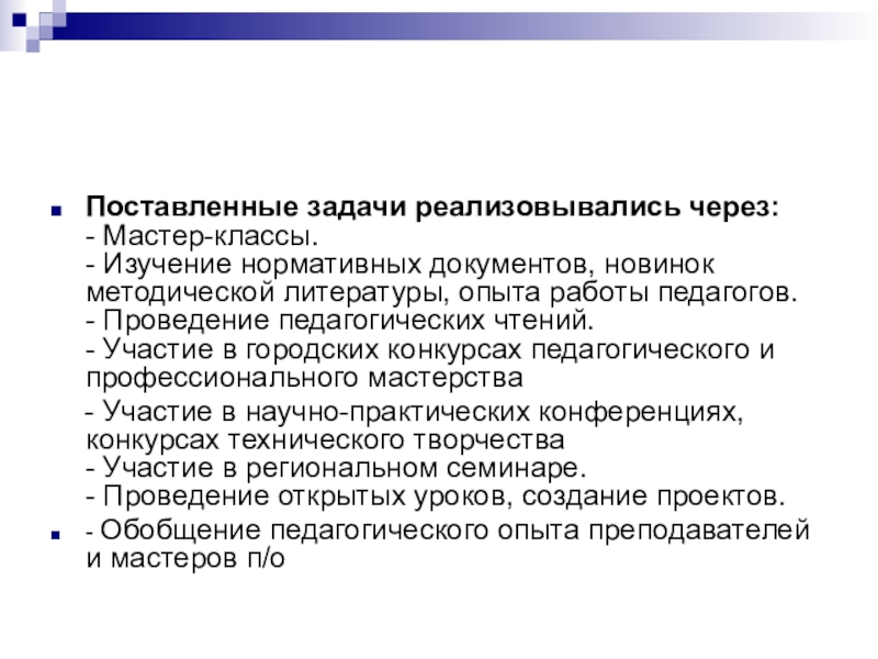 - Обобщение педагогического опыта преподавателей и мастеров п/о