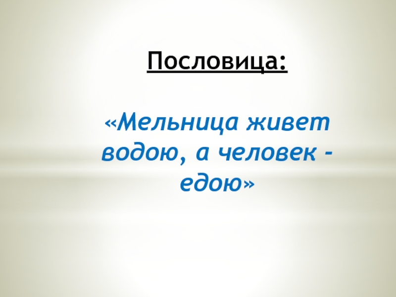 Слайд 12Пословица: «Мельница живет водою, а человек - едою»