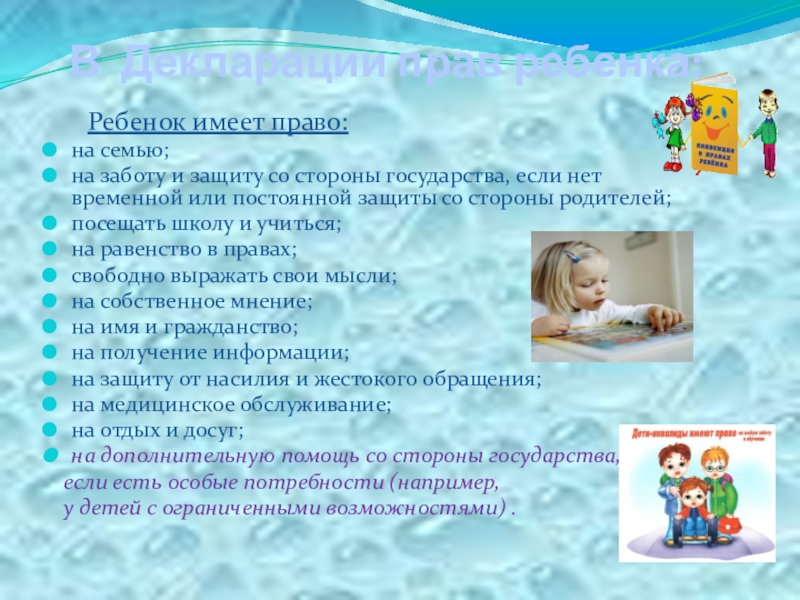 Статья 26. Дети имеют право на помощь государства, если они в нужде и бедности.
