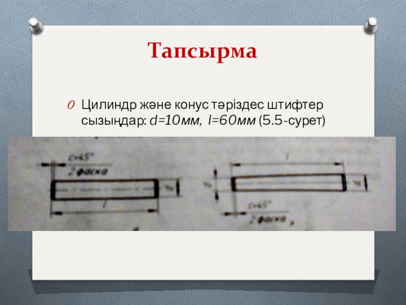 Тапсырма Цилиндр және конус тәріздес штифтер сызыңдар: d=10мм, l=60мм (5.5-сурет)