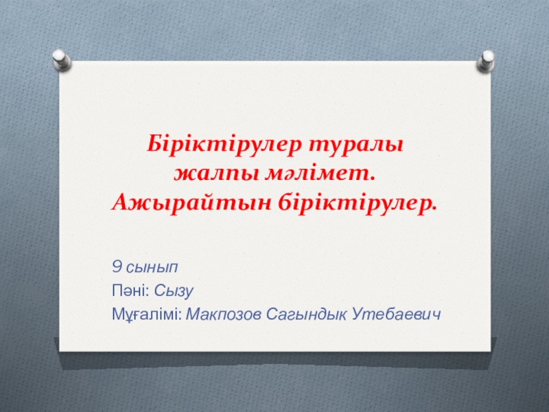 Слайд 1Біріктірулер туралы жалпы мәлімет. Ажырайтын біріктірулер.