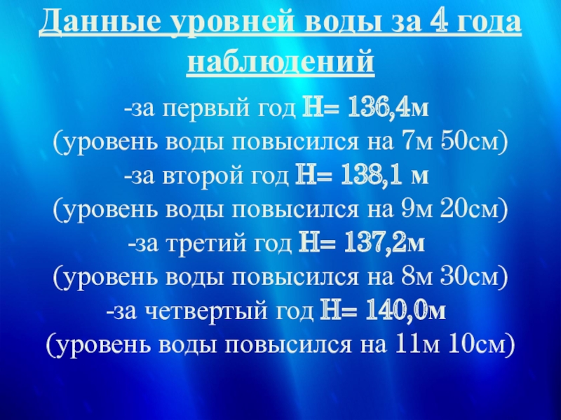 Слайд 19Данные уровней воды за 4 года наблюдений