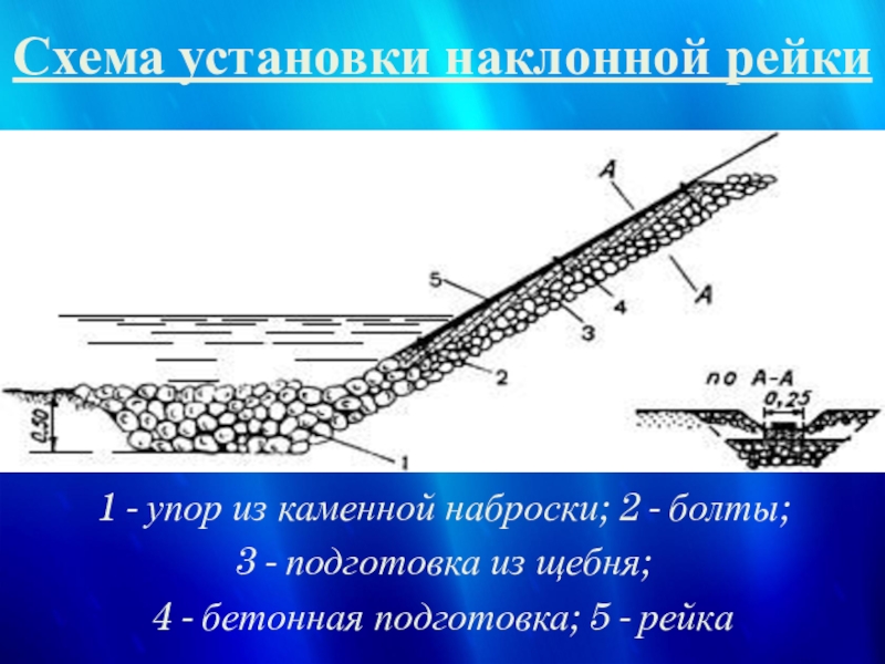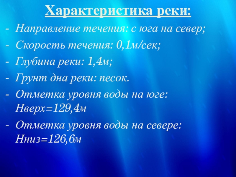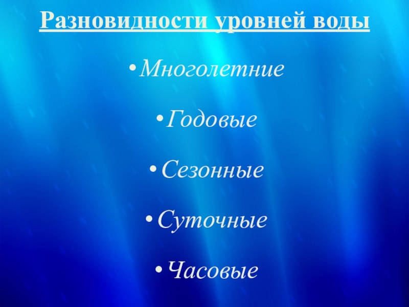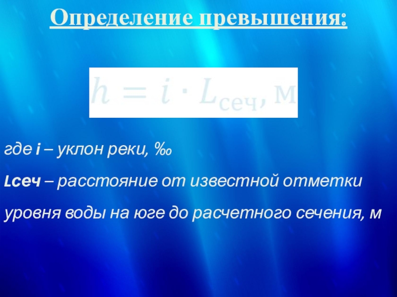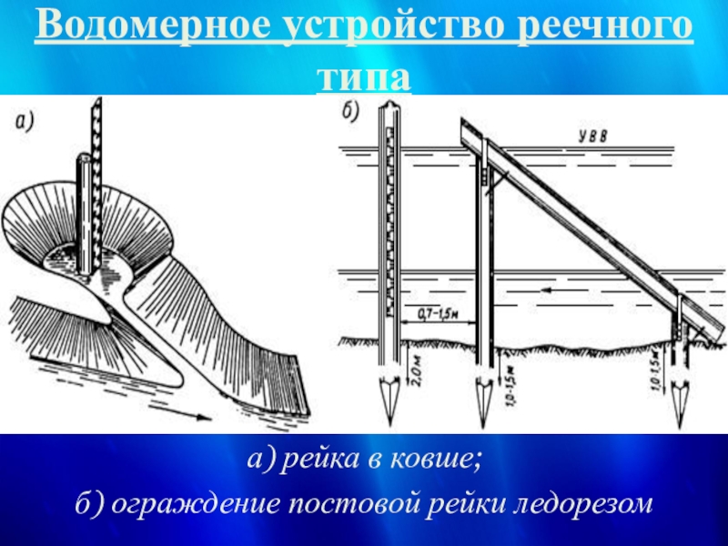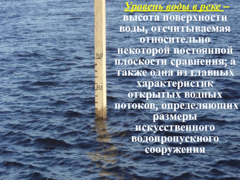 Слайд 5 Уровень воды в реке – высота поверхности воды, отсчитываемая относительно некоторой