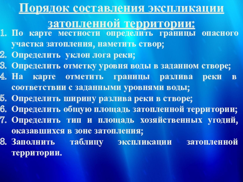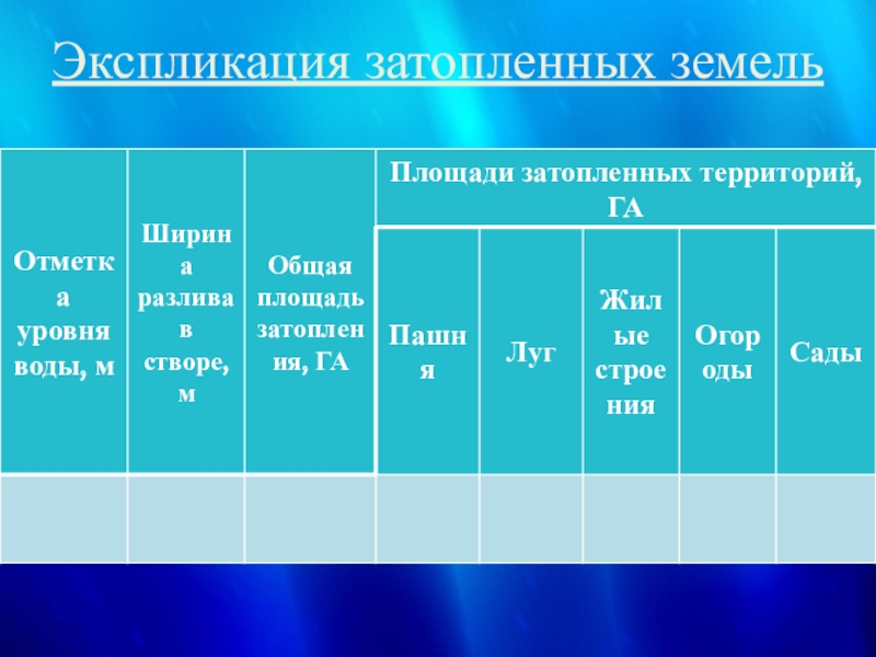 Определение площади затопления долины реки, составление экспликации затопленных территорий
