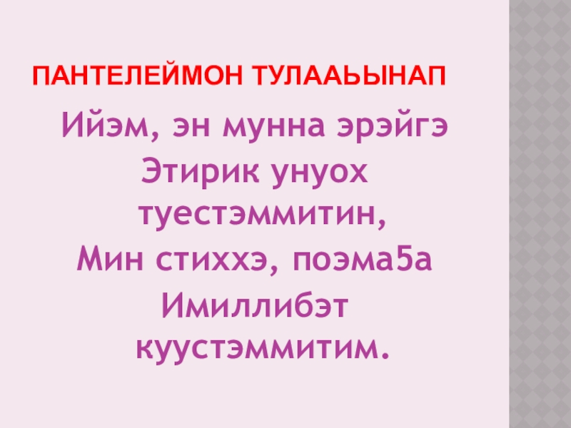 Пантелеймон ТулааЬынапИйэм, эн мунна эрэйгэЭтирик унуох туестэммитин,Мин стиххэ, поэма5аИмиллибэт куустэммитим.