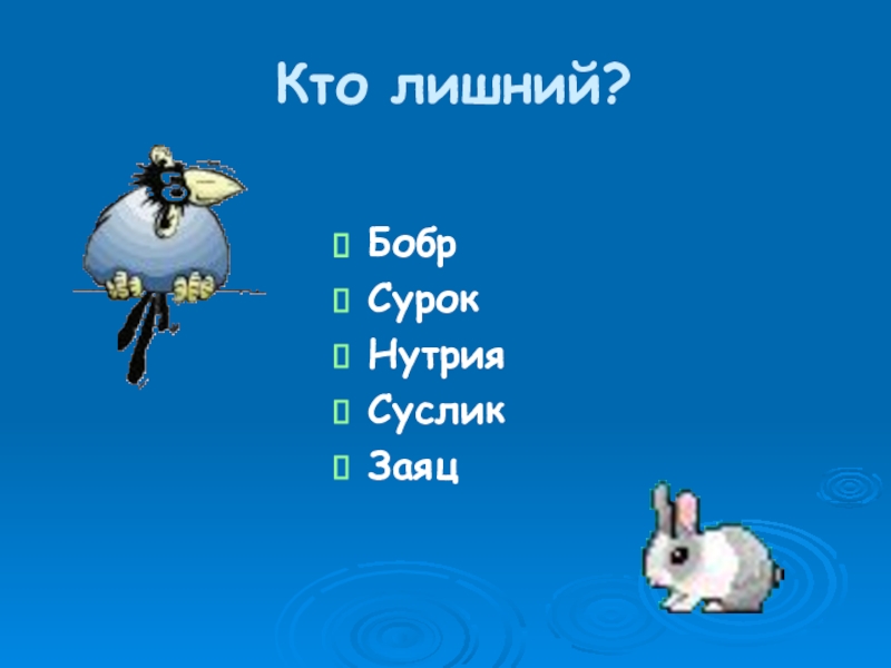 Кто лишний?БобрСурокНутрияСусликЗаяц