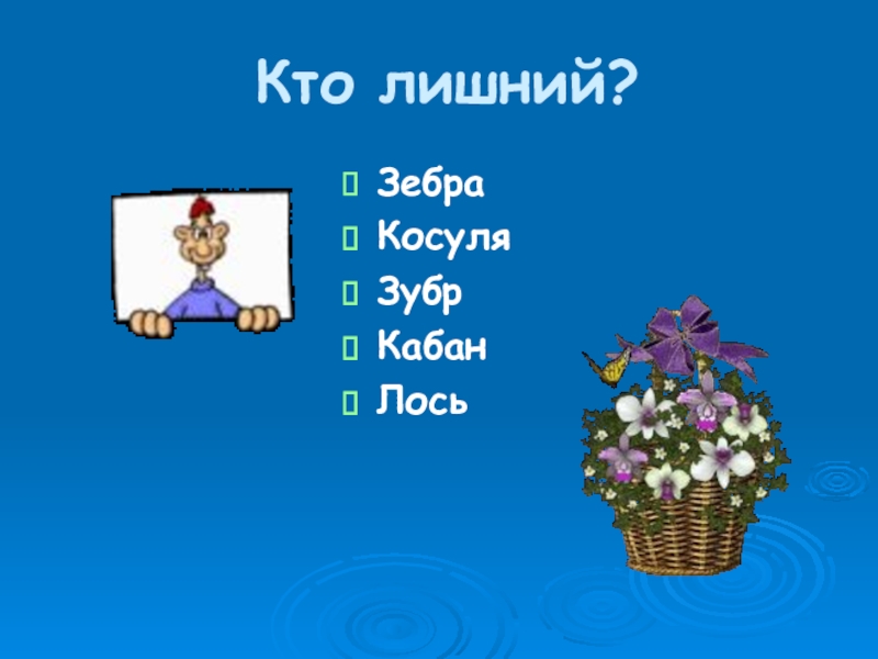 Кто лишний?ЗебраКосуляЗубрКабанЛось