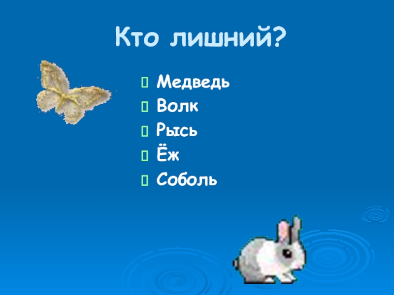 Кто лишний?МедведьВолкРысьЁжСоболь