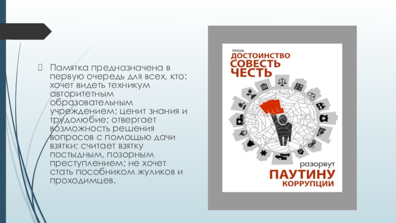 Это сайт презентаций, где можно хранить и обмениваться своими презентациями, докладами, проектами, шаблонами в формате PowerPoint с другими пользователями. Мы помогаем школьникам, студентам, учителям, преподавателям хранить и обмениваться учебными материалами.
