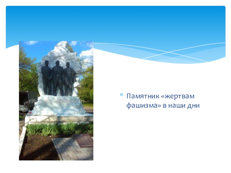 Слайд 11Памятник «жертвам фашизма» в наши дни