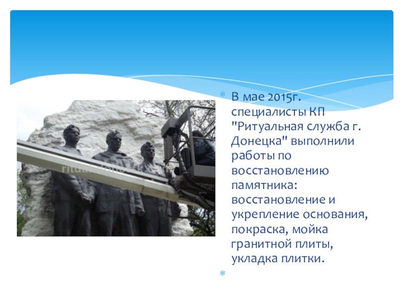Слайд 7В мае 2015г. специалисты КП "Ритуальная служба г. Донецка" выполнили работы