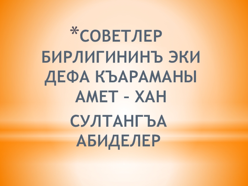 Слайд 2Советлер бирлигининъ эки дефа къараманы АМЕТ – ХАН
