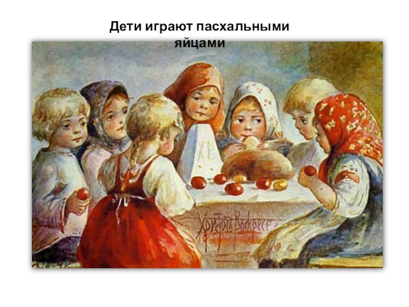 Слайд 24Дети играют пасхальными яйцами