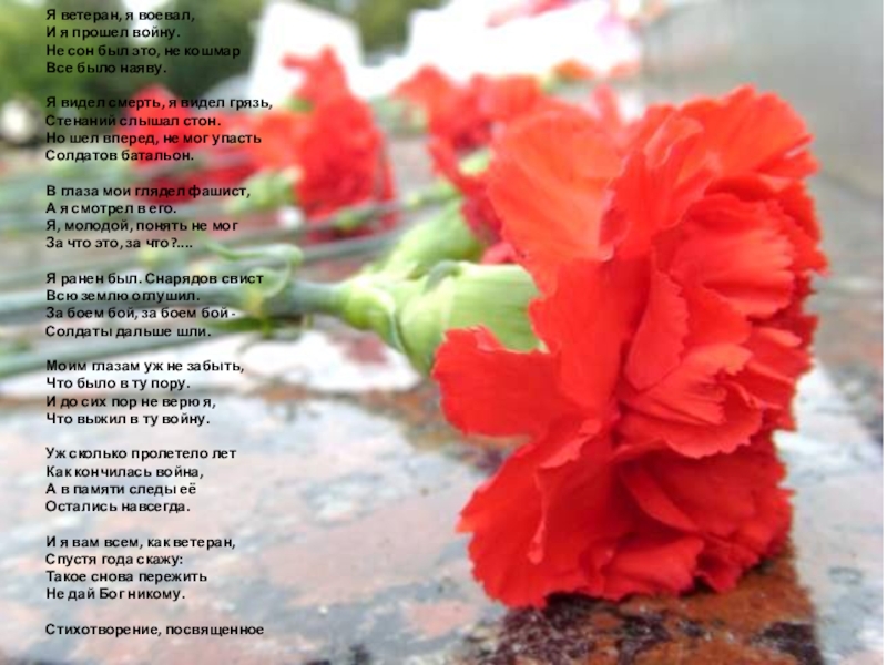 Я ветеран, я воевал, И я прошел войну. Не сон был это, не кошмар Все было наяву.