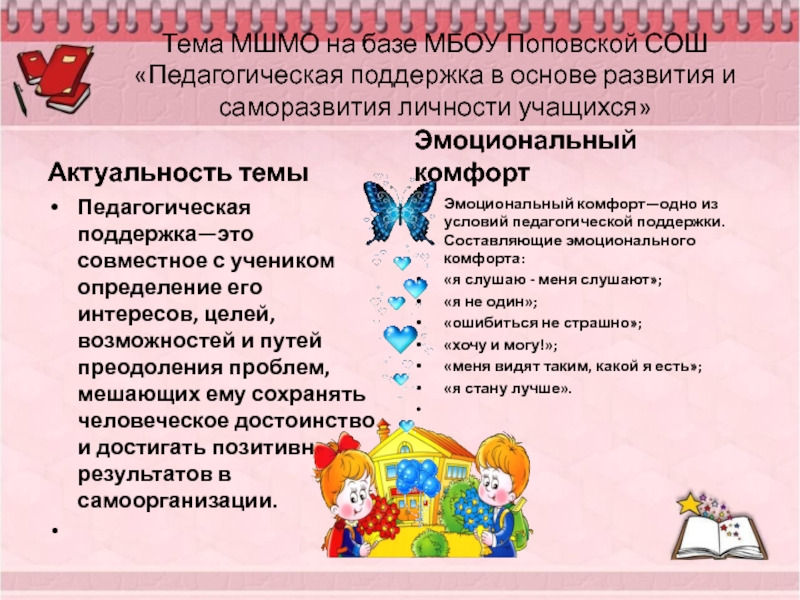 Эмоциональный комфорт—одно из условий педагогической поддержки. Составляющие эмоционального комфорта: