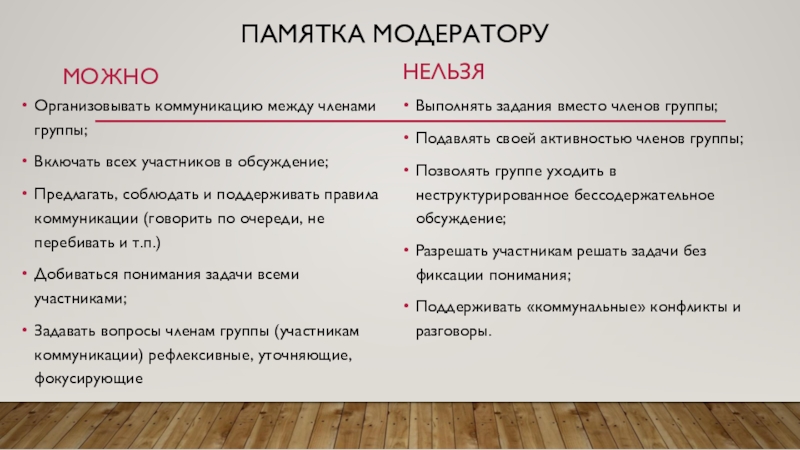 Позволять группе уходить в неструктурированное бессодержательное обсуждение;
