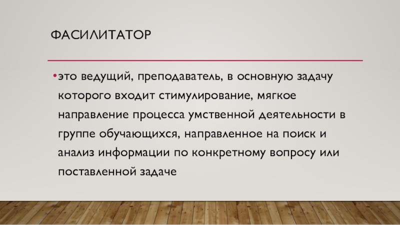 Влияет на принятие группового решения, направляет группу при помощи вопросов, предложения своих вариантов решения, эмоционального воздействия