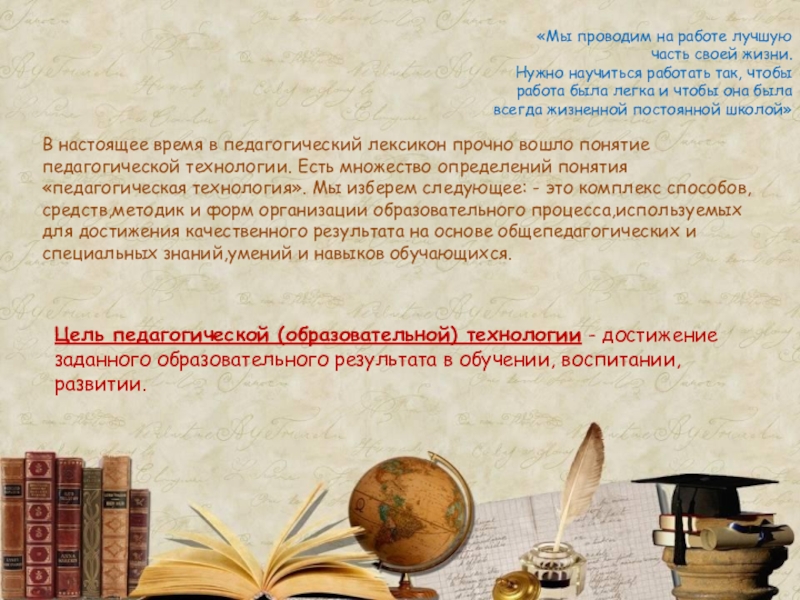 В настоящее время в педагогический лексикон прочно вошло понятие педагогической технологии. Есть множество определений понятия «педагогическая технология». Мы изберем следующее: - это комплекс способов,средств,методик и форм организации образовательного процесса,используемых для достижения качественного результата на основе общепедагогических и специальных знаний,умений и навыков обучающихся.