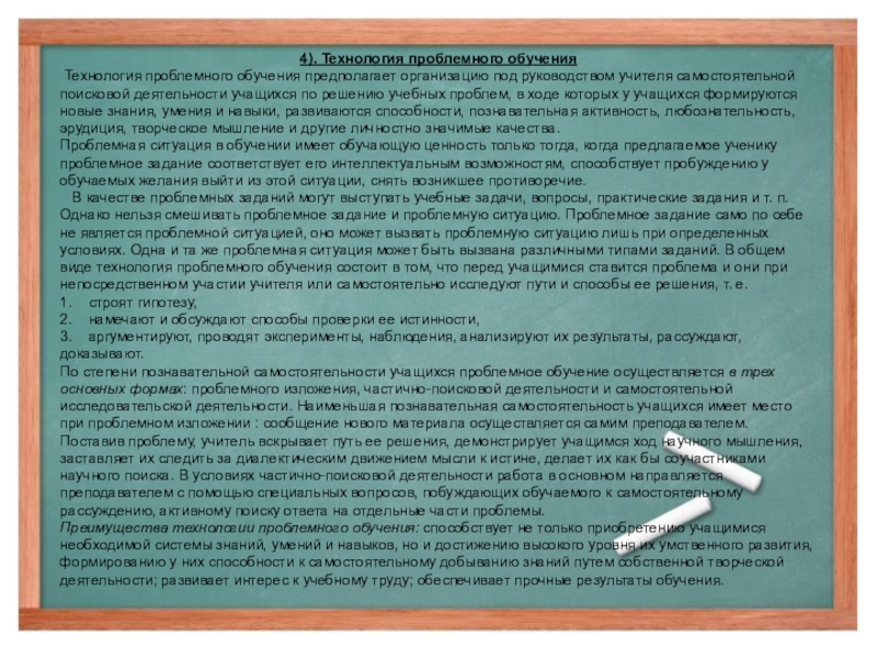 Технология проблемного обучения предполагает организацию под руководством учителя