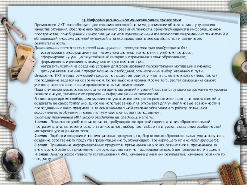· использовать информационные - коммуникационные технологии в учебном процессе;
