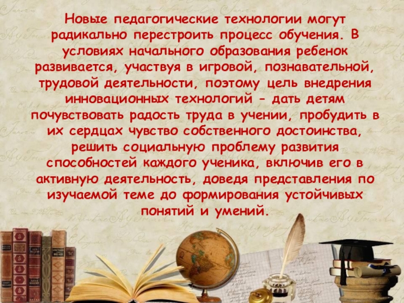 Слайд 16Новые педагогические технологии могут радикально перестроить процесс обучения. В условиях начального