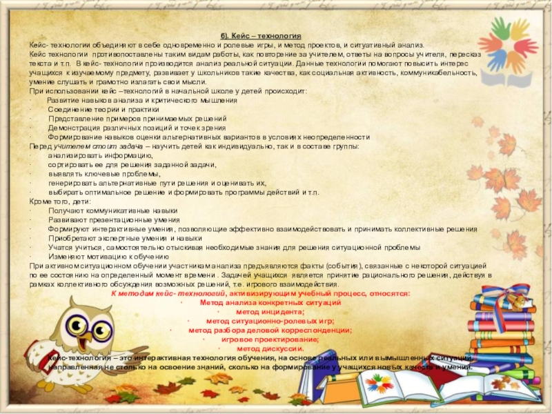 Кейс-технология – это интерактивная технология обучения, на основе реальных или вымышленных ситуаций, направленная не столько на освоение знаний, сколько на формирование у учащихся новых качеств и умений.