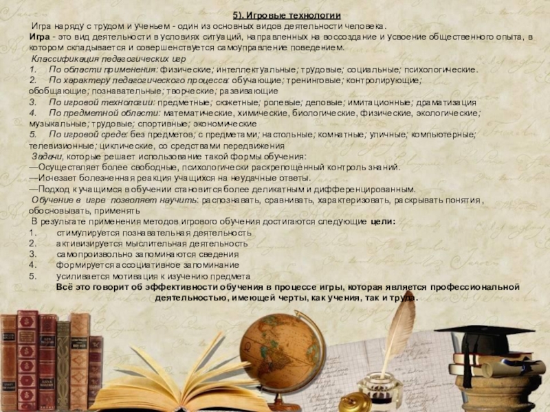 3. По игровой технологии: предметные; сюжетные; ролевые; деловые; имитационные; драматизация