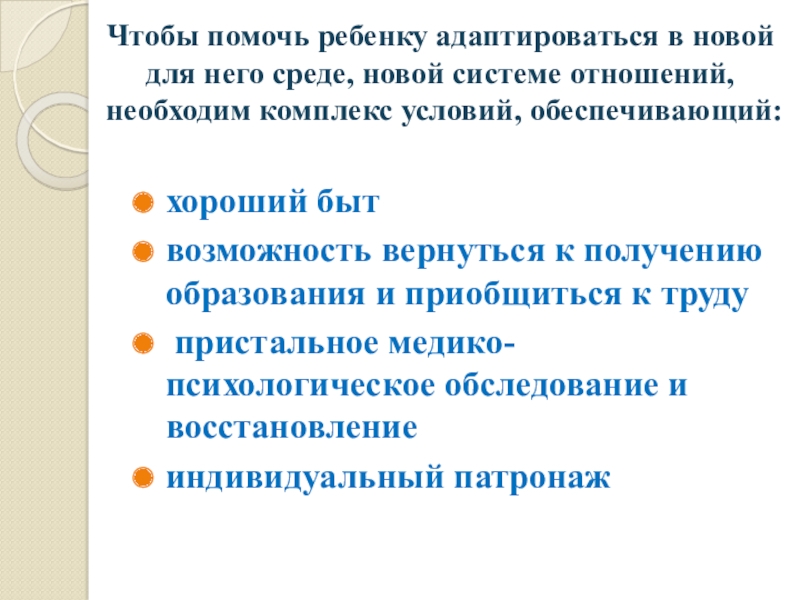Слайд 22Чтобы помочь ребенку адаптироваться в новой для него среде, новой системе