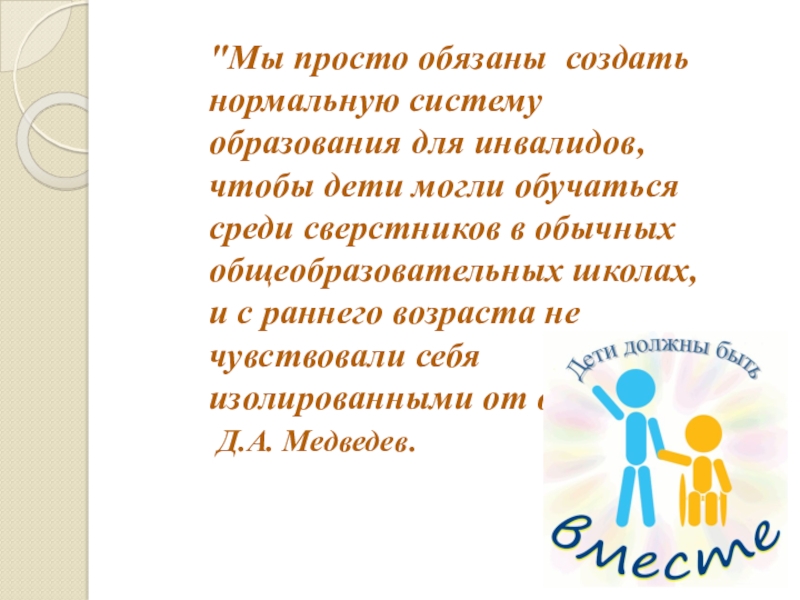 Слайд 2"Мы просто обязаны создать нормальную систему образования для инвалидов, чтобы дети