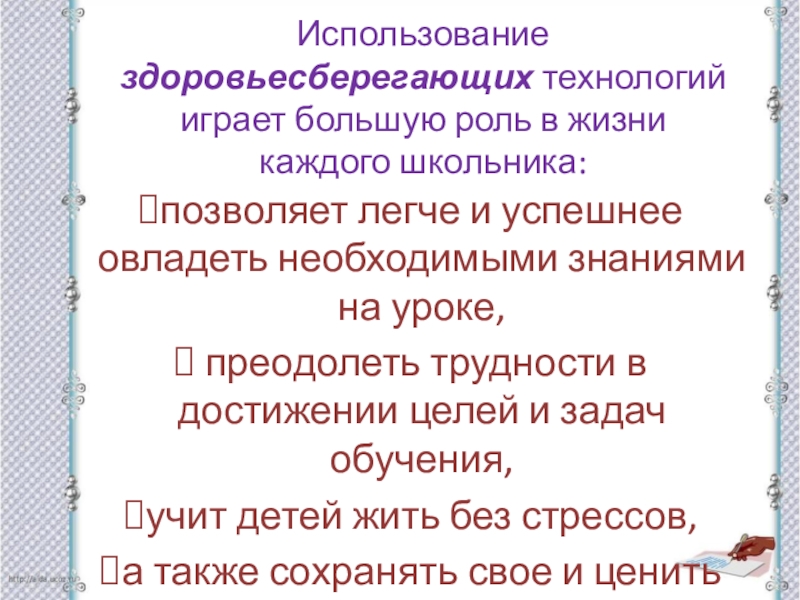 Слайд 5Использование здоровьесберегающих технологий играет большую роль в жизни каждого школьника:
