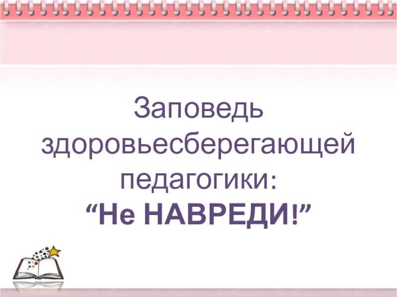 Слайд 6Заповедь здоровьесберегающей педагогики: