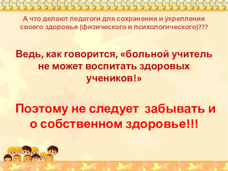 Ведь, как говорится, «больной учитель не может воспитать здоровых учеников!»