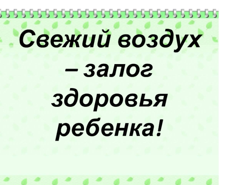 Слайд 25Свежий воздух – залог здоровья ребенка!