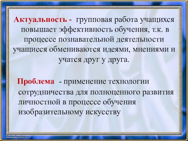 Проблема - применение технологии сотрудничества для полноценного развития личностной в процессе обучения изобразительному искусству