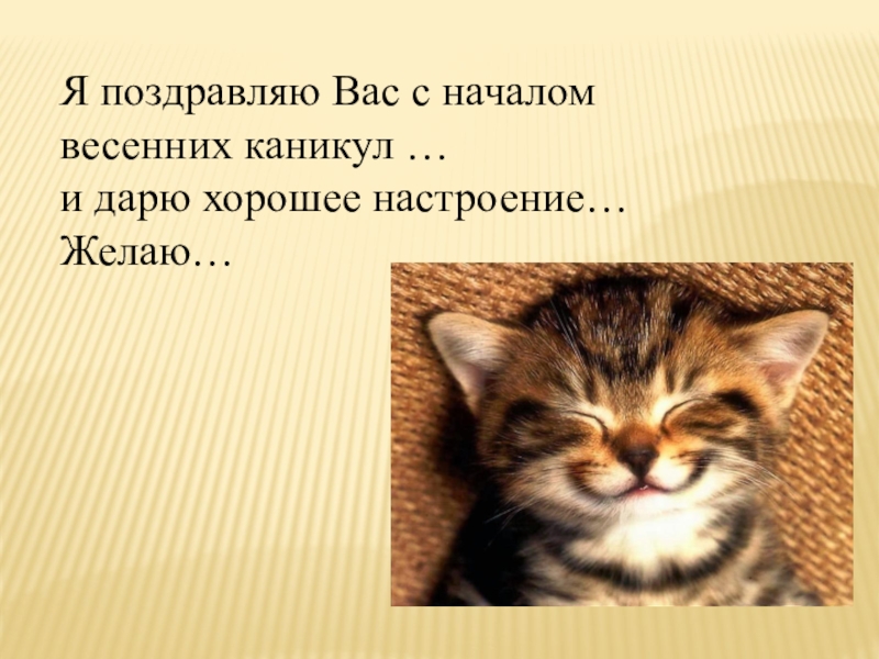 Слайд 50Я поздравляю Вас с началом весенних каникул …