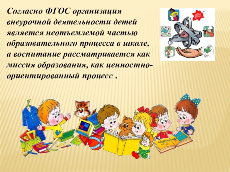 Слайд 11Согласно ФГОС организация внеурочной деятельности детей является неотъемлемой частью образовательного процесса