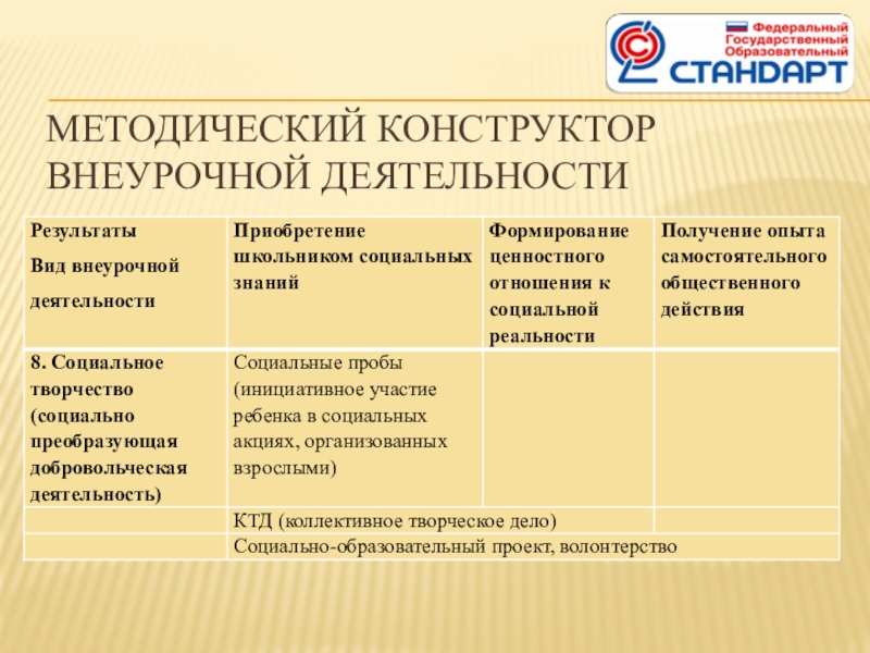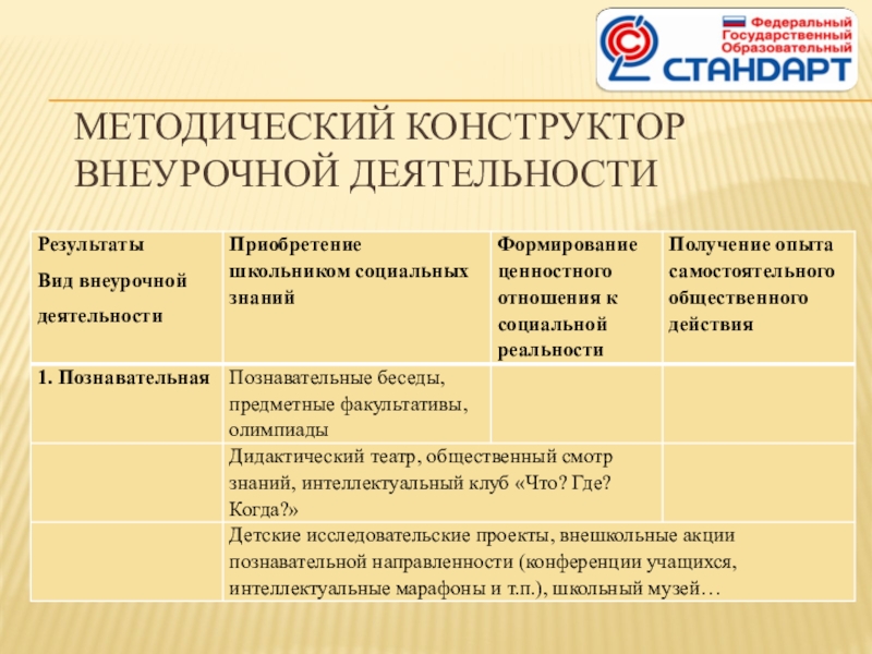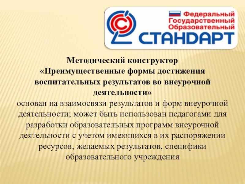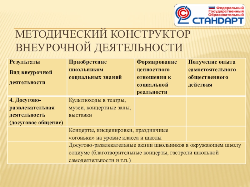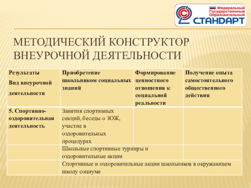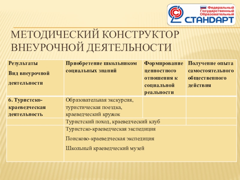 взаимосвязи результатов и форм внеурочной деятельности; может быть использован педагогами для разработки образовательных программ внеурочной деятельности с учетом имеющихся в их распоряжении ресурсов, желаемых результатов, специфики образовательного учреждения